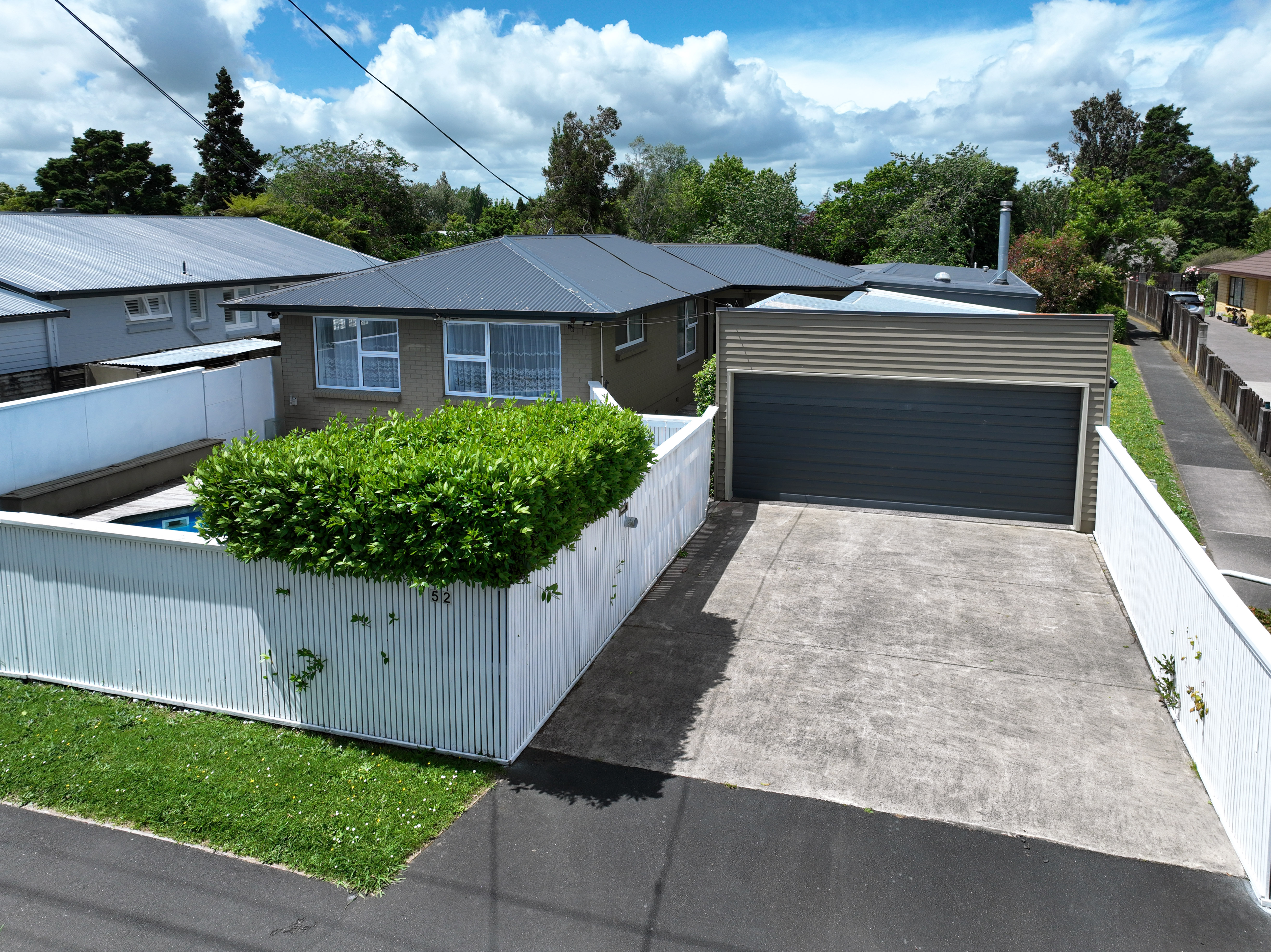 With summer upon us, the pool is calling - while the log burner awaits to make winter just as inviting. The double glazed windows will keep your home very cosy. The large rear section has been the current owner's private veggie garden, and fruit paradise (fig, plum, peach, feijoa, lemon, mandarin, orange, tangelo, grape, grapefruit, cherry guava) though it offers endless potential for those with imagination and plans for the future.