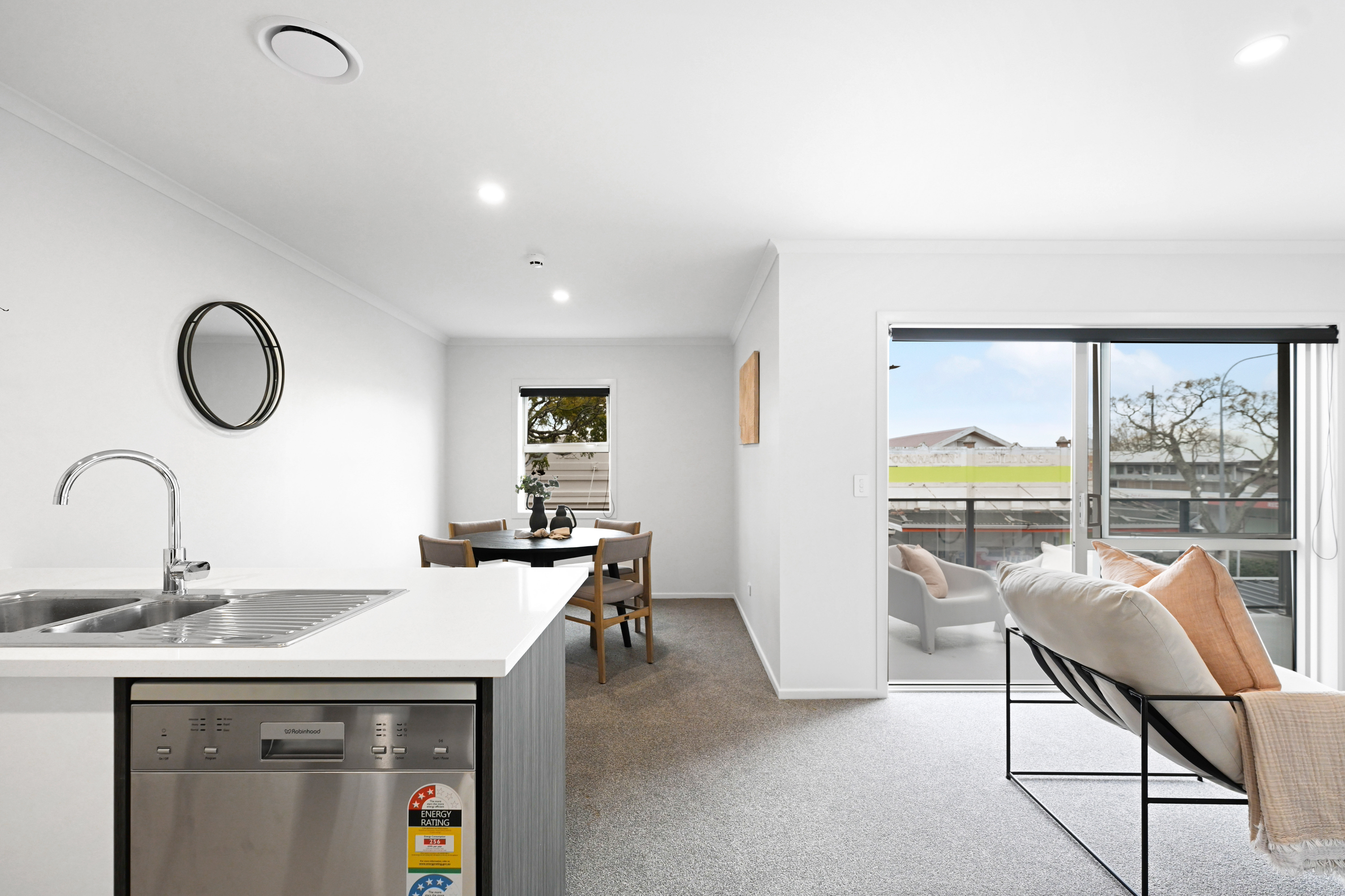 A striking blend of Hinuera Stone and timber-look aluminium cladding delivers strong street appeal while keeping maintenance simple-perfect for busy lifestyles or first-home buyers wanting weekends free. Inside, you'll love the light-filled interiors, stone benchtops, walk-in wardrobe, energy-effcient double glazing, heat pump for year-round comfort, and your own private balcony for morning coffees or evening down time. A condenser washer/dryer is also included, making move-in day that much easier.