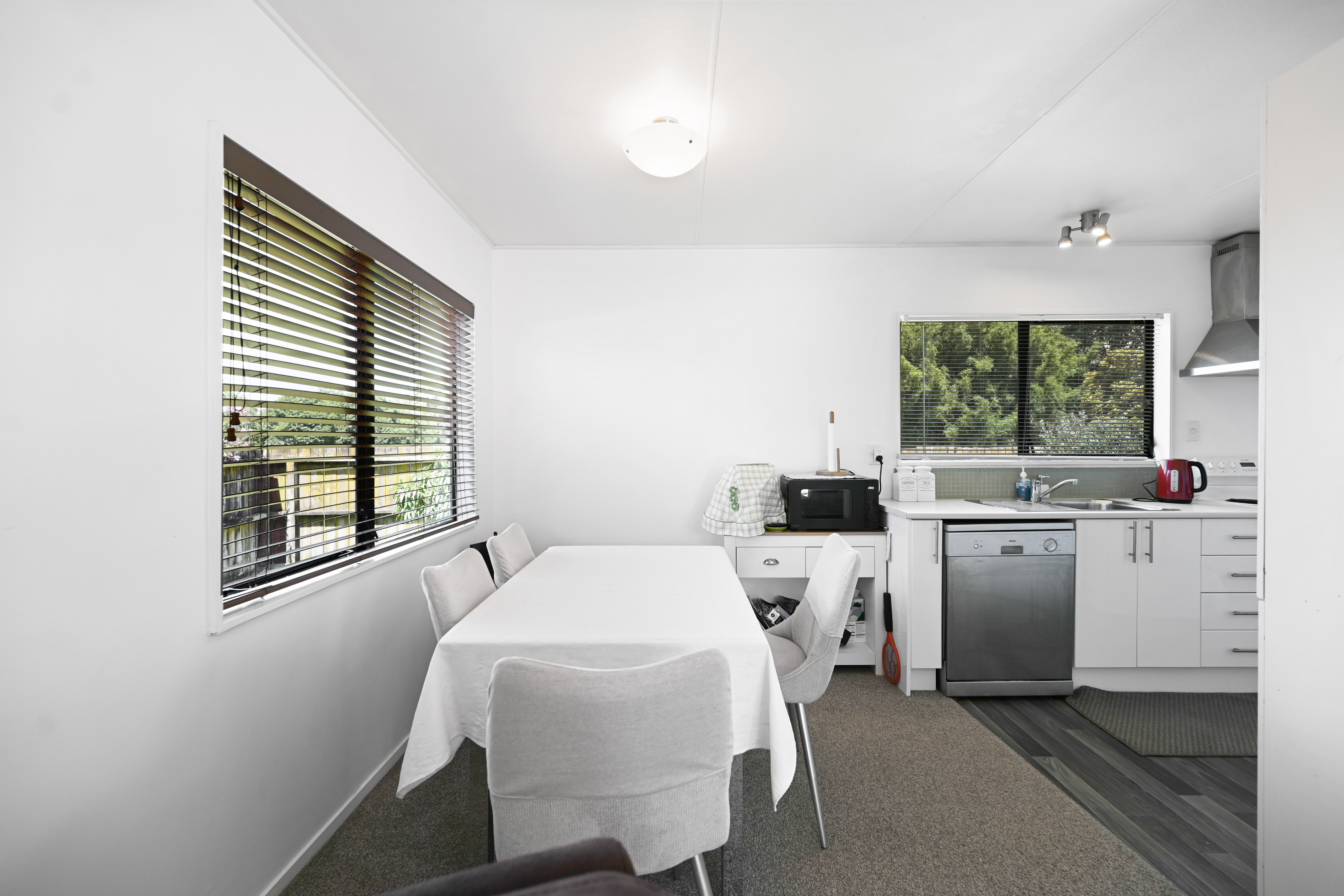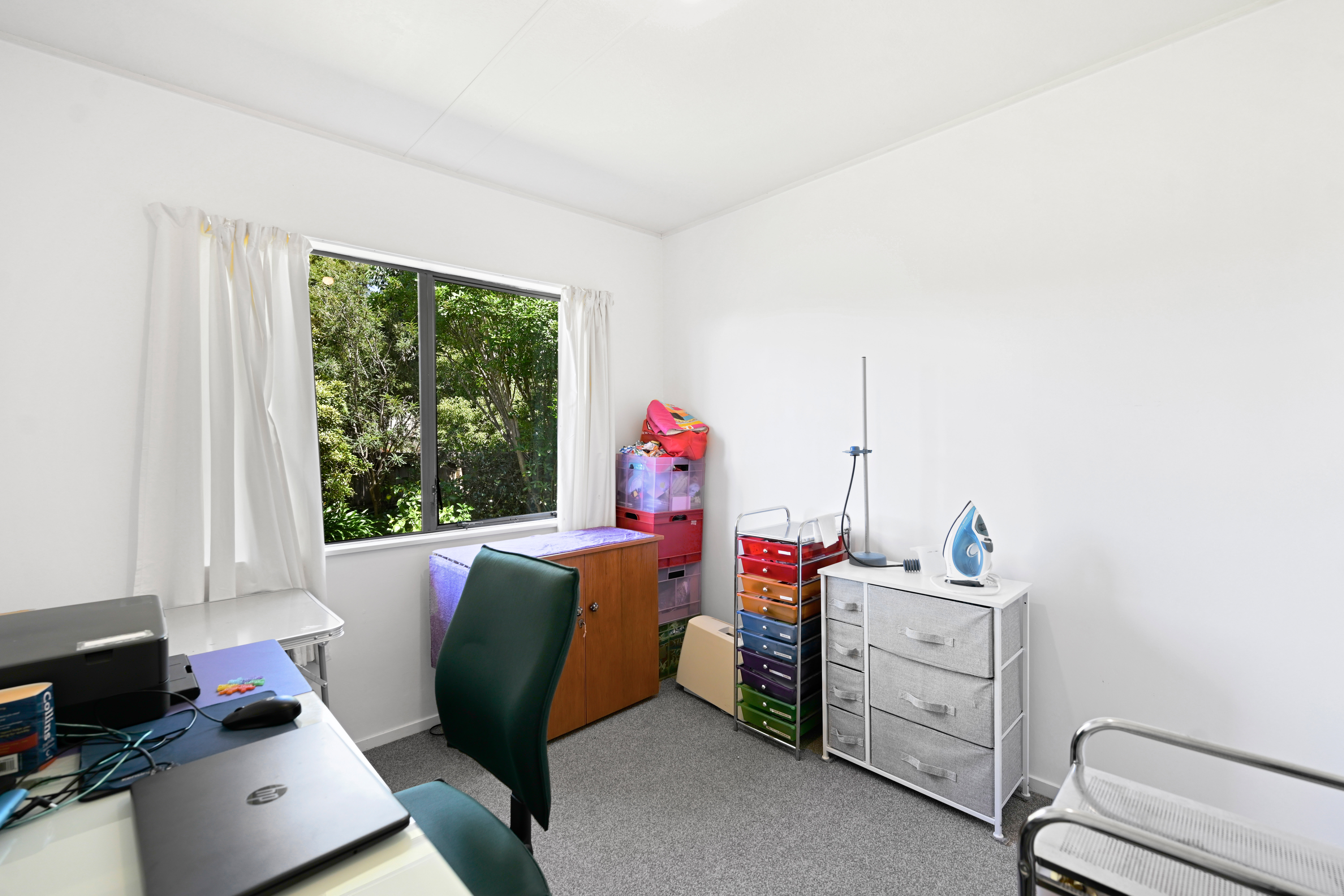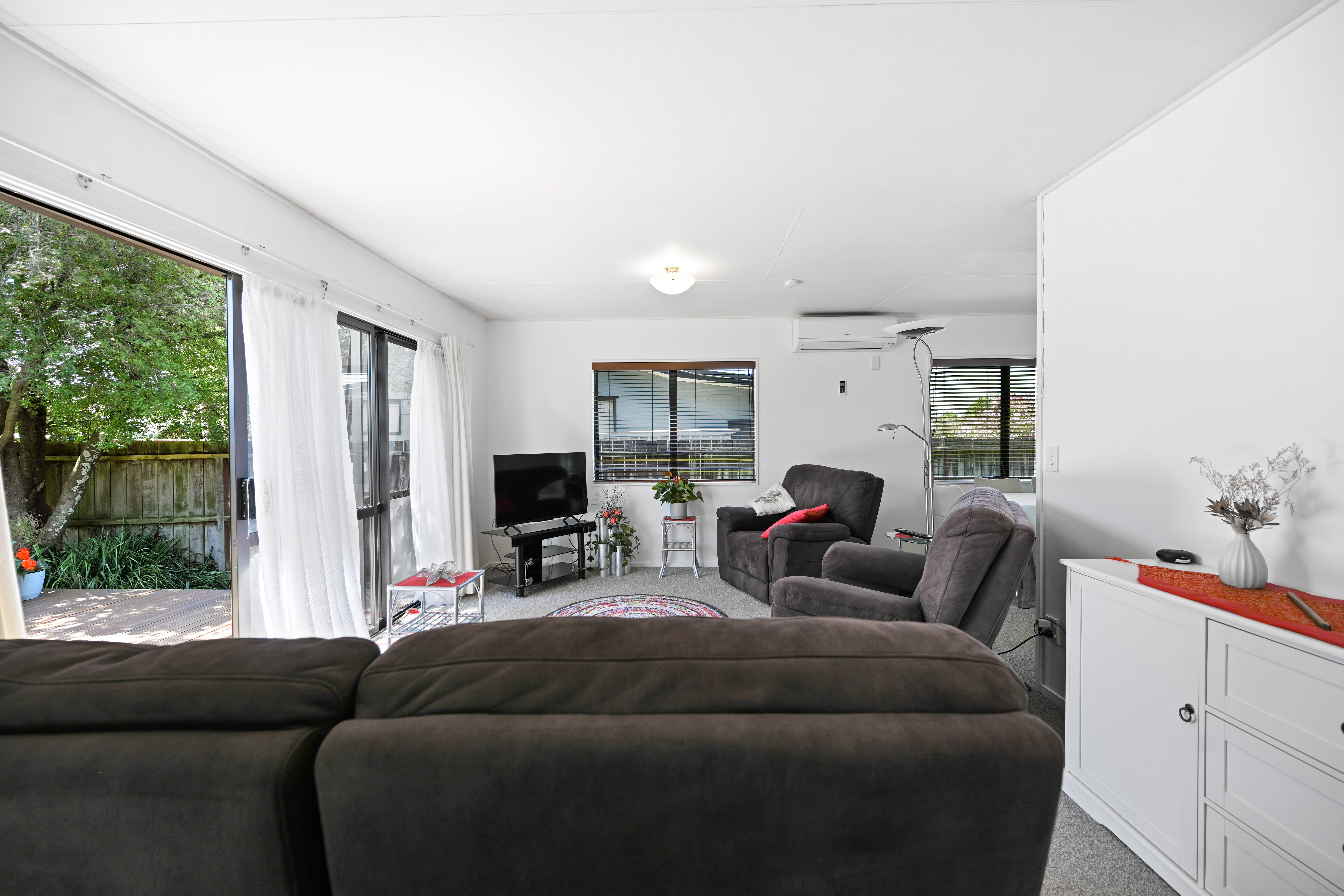 Inside, the layout is practical and comfortable, with three well-proportioned bedrooms, a tidy family bathroom, and the ease of added conveniences including a separate laundry, and a single garage and further off-street parking. Year-round comfort is ensured through additional features including a heat pump, insulation, and aluminum joinery.