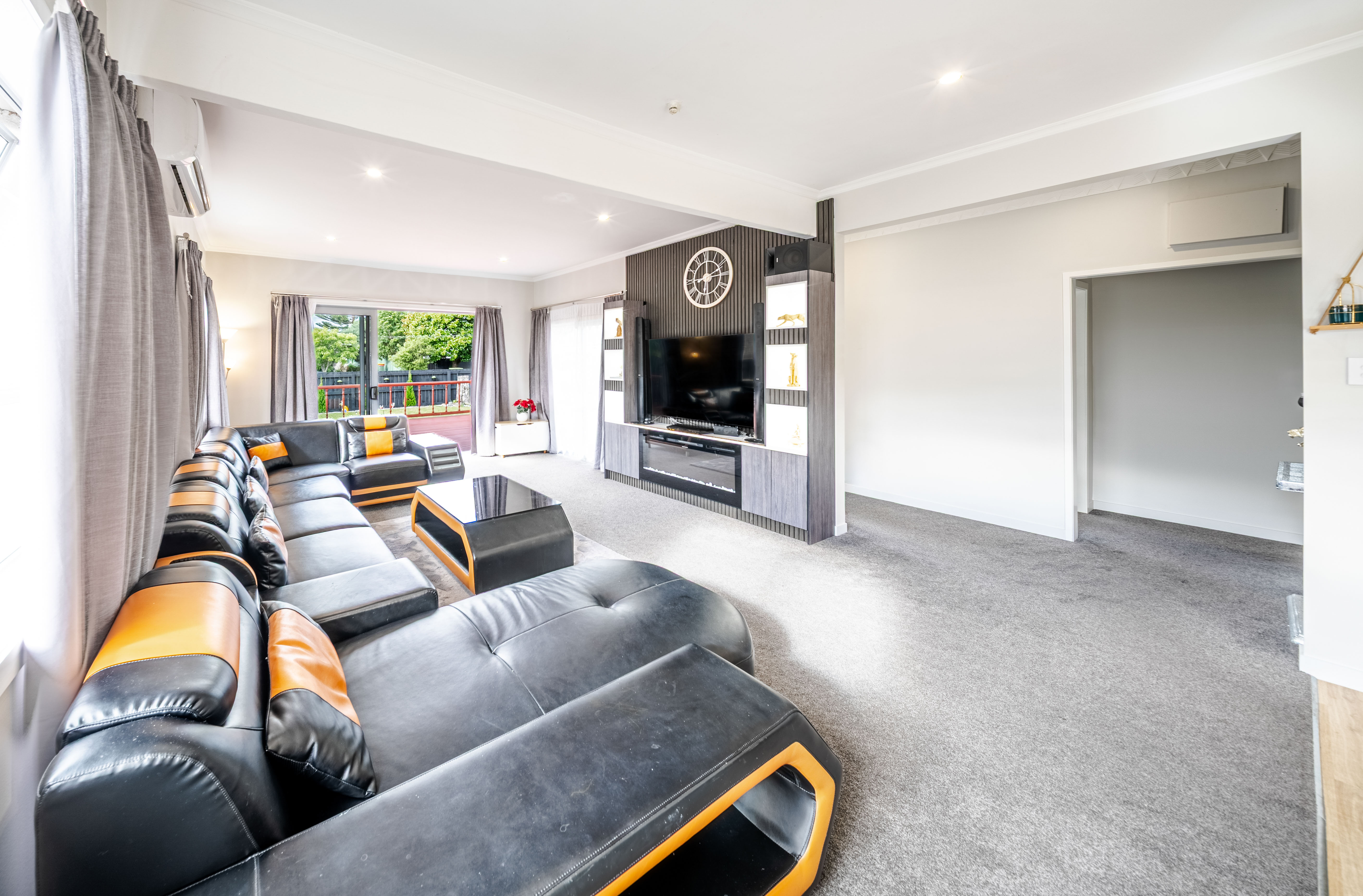At the heart of the home is a spacious open-plan kitchen featuring sleek stone benchtops, quality appliances, and excellent storage. This inviting space flows seamlessly into the dining area and an exceptionally generous living zone, creating the perfect hub for everyday living and entertaining. From here, step out onto the north-facing entertainer's deck, ideal for BBQs, relaxed evenings, and enjoying the true Kiwi outdoor lifestyle with family and friends.