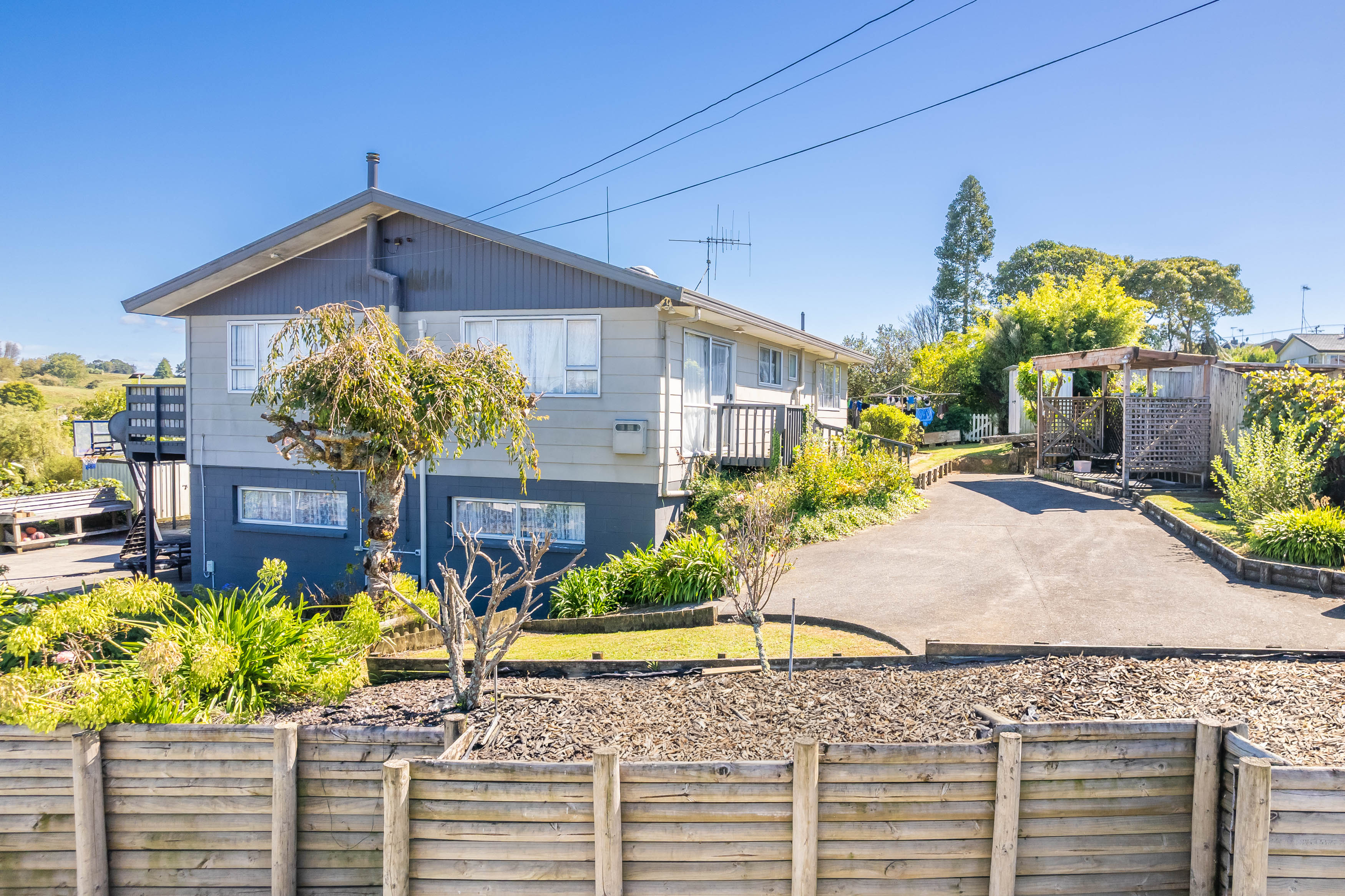 Positioned on an elevated 1,115m² section, the home enjoys expansive views across Temple View Reserve and out to Mount Pirongia. There is genuine development potential here, whether you consider adding a second dwelling or exploring a full redevelopment of the site.
