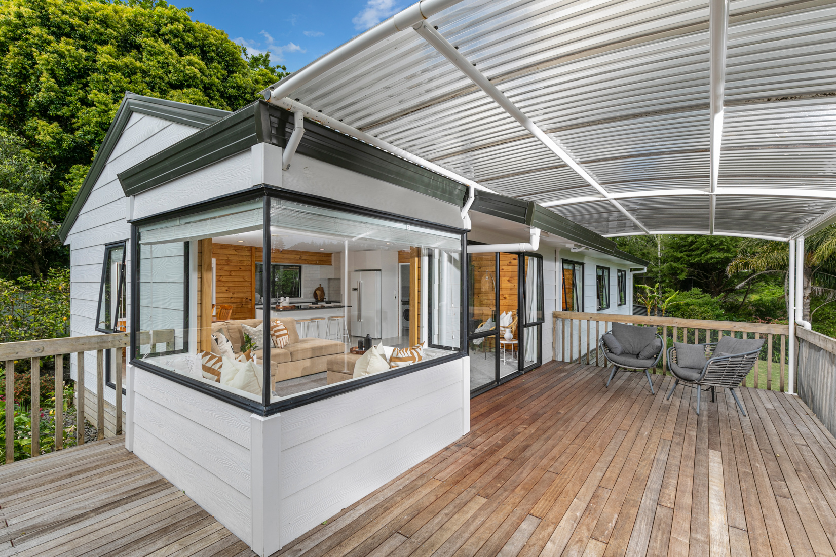 Situated in the peaceful Henderson Valley, with established gardens, a myriad of birdlife and fruit trees - there's plenty of space for large or extended families to relax and enjoy.