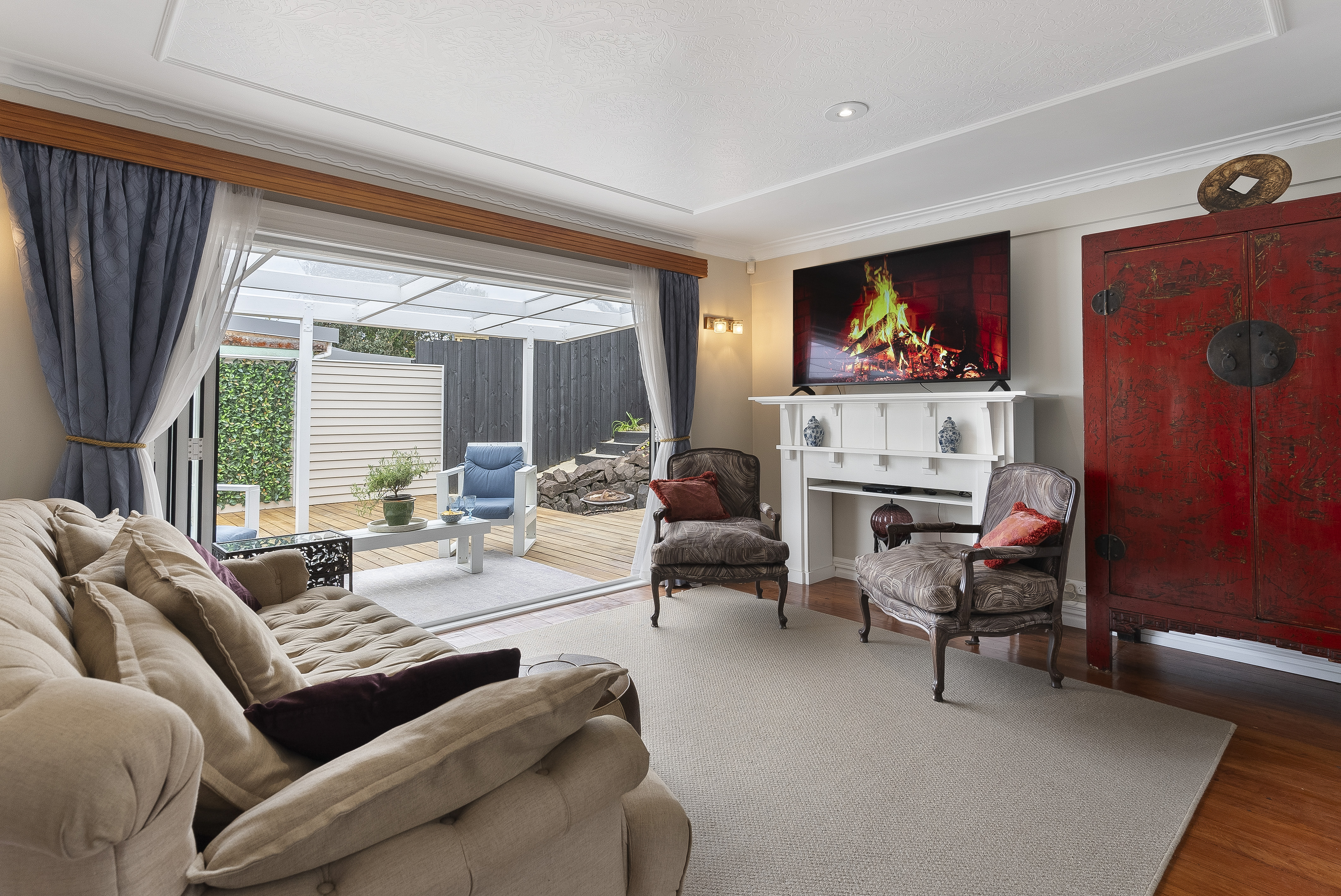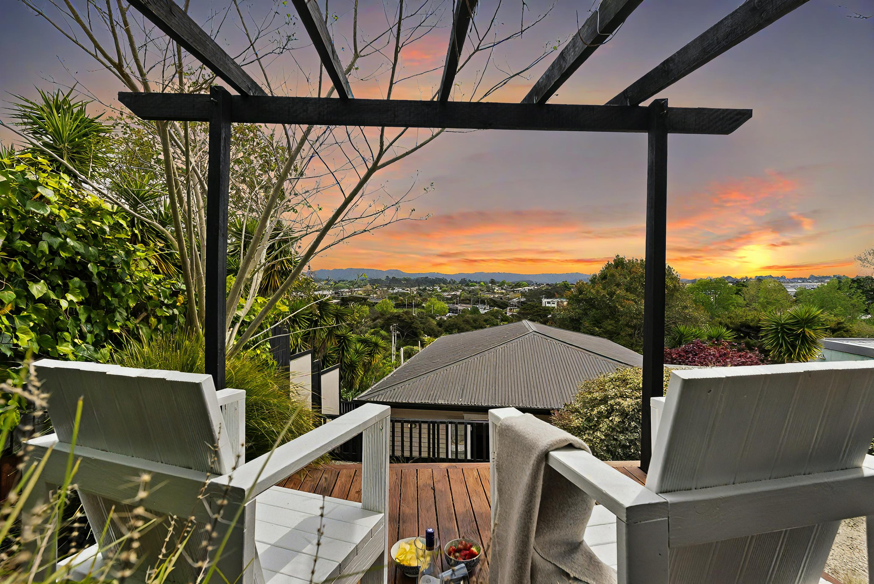 With large decks providing private but spacious entertaining areas, a terraced garden, complete with petanque court (or mini golf if you prefer), or step up to the viewing platform - where you can soak up the views across to Oratia and the Waitakere Ranges.