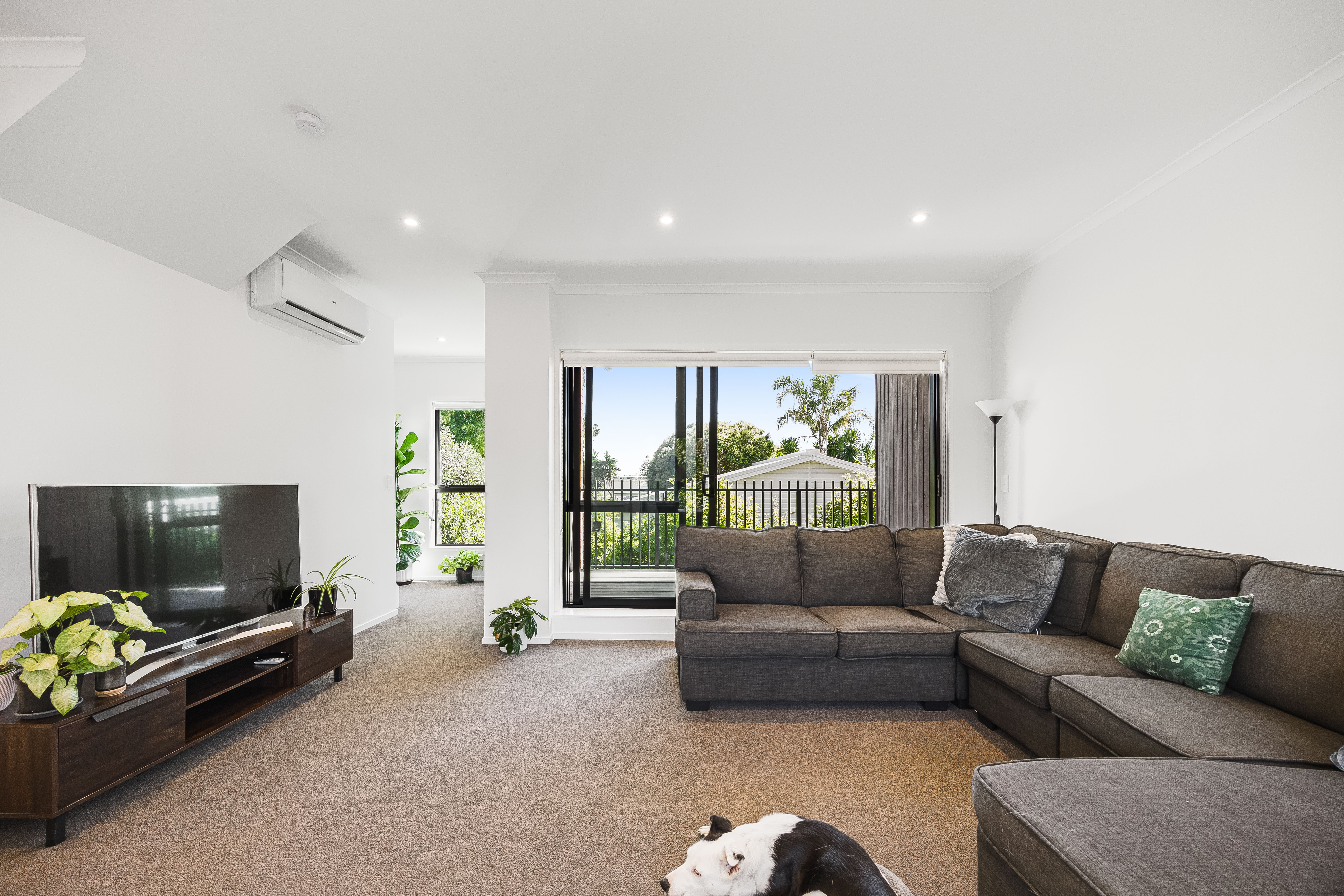 The flexible layout includes three well-proportioned bedrooms, with a downstairs bedroom and bathroom opening out to an outdoor patio, making it an ideal option for a home office, guest suite, or extended family living. Comfort is assured year-round with a heat pump, electric fan heaters in each bedroom, double-glazed windows throughout, and full Healthy Homes compliance. Fibre internet and a single internal garage complete the package.