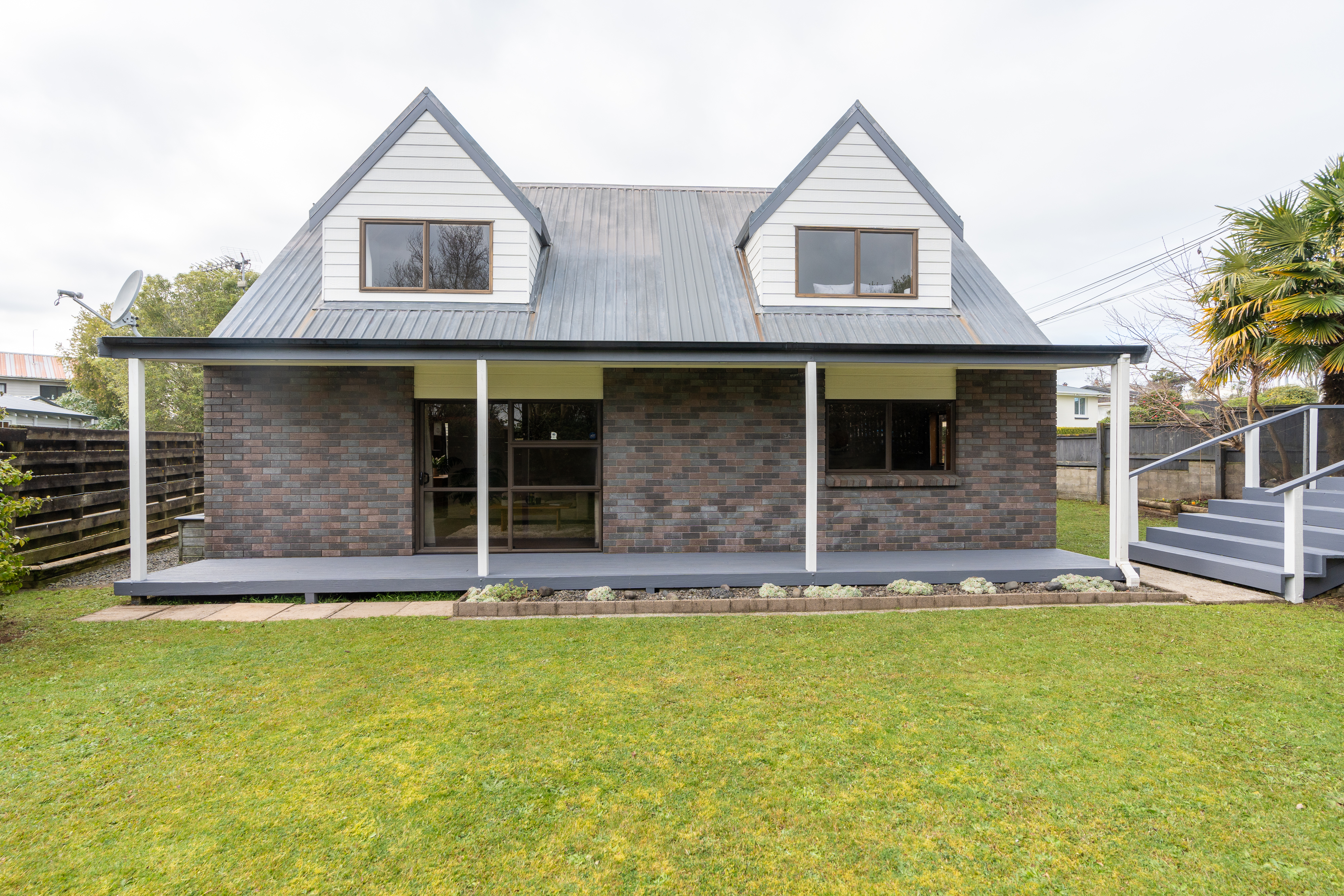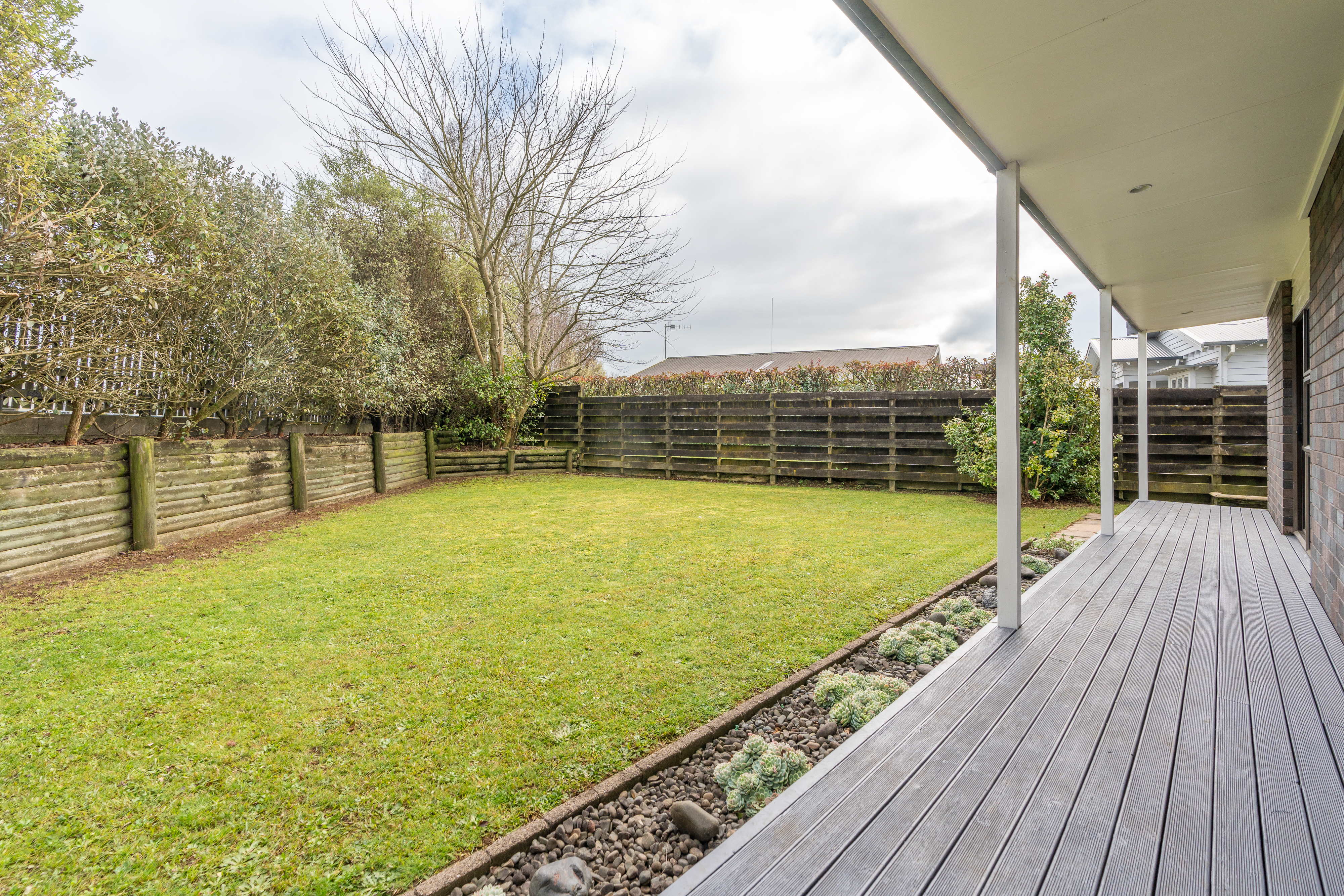 The property has a large kitchen with ample cupboard space, dining room, with sliders to the outdoors, large formal lounge and one bedroom downstairs, Two large bedrooms upstairs share a sizeable bathroom. A heatpump keeps everything cosy during our winter months, and there is the bonus of a double carport. Fully fenced for children and pets to play. Easily maintained raised garden for your homegrown vegetables.