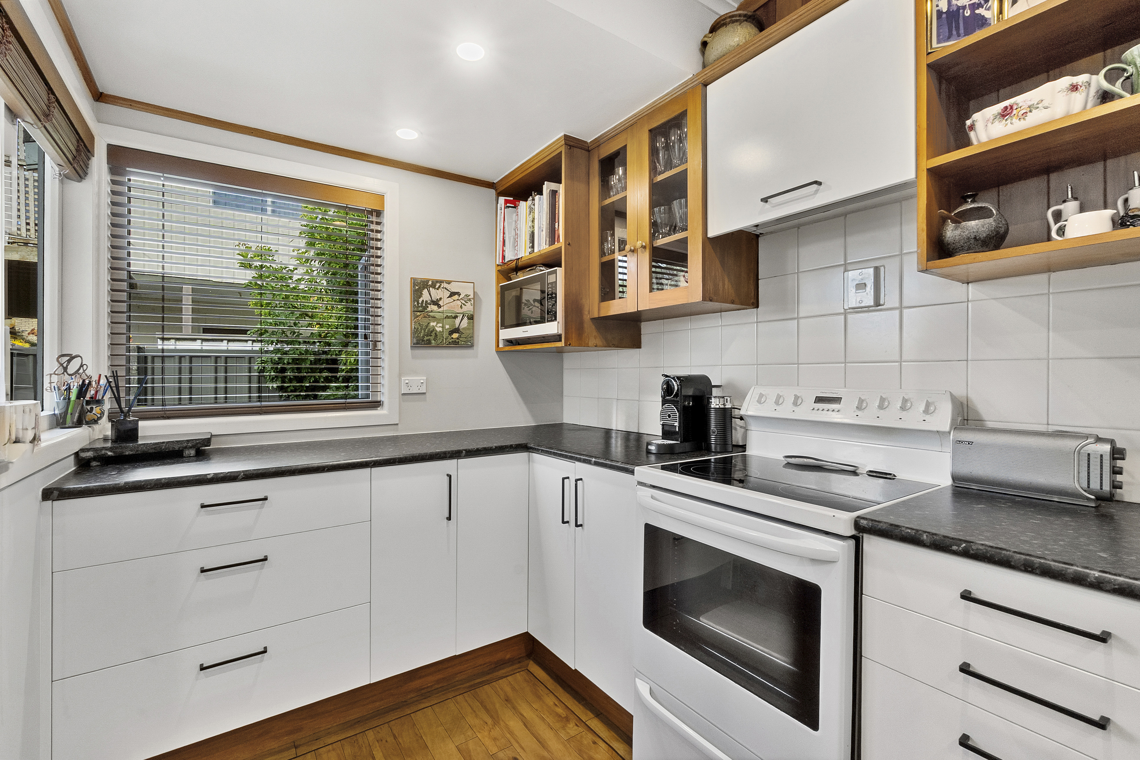 The home has served them well and has seen some upgrades over the years, and the garden is well established with mature plantings and trees for privacy. The slightly elevated position also means you can relax on the north facing deck and enjoy views across the neighbouring treed sections, or relax with a cuppa in the sunny window seat that captures full day sun.