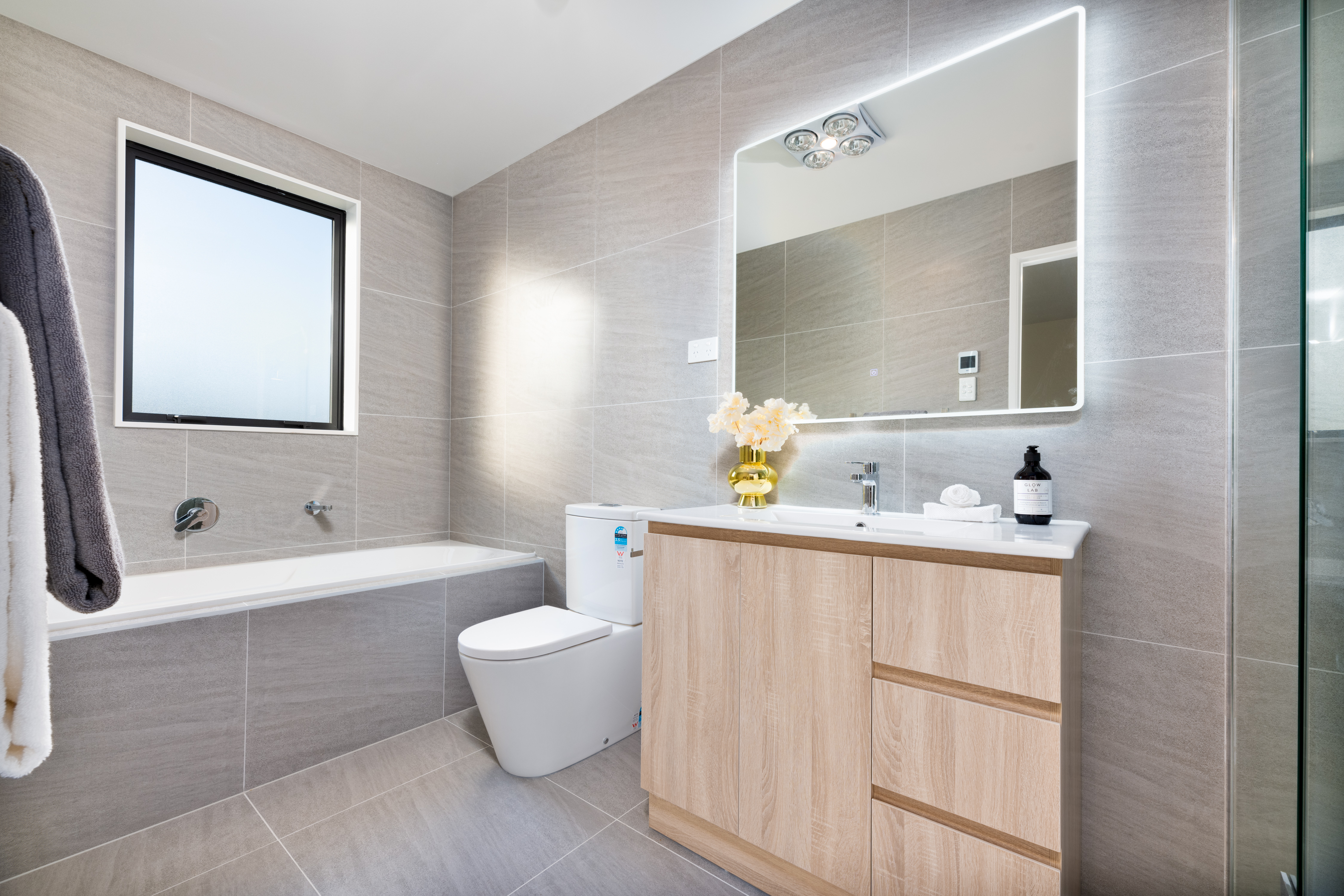 - 2 fully tiled bathrooms (3 toilets).