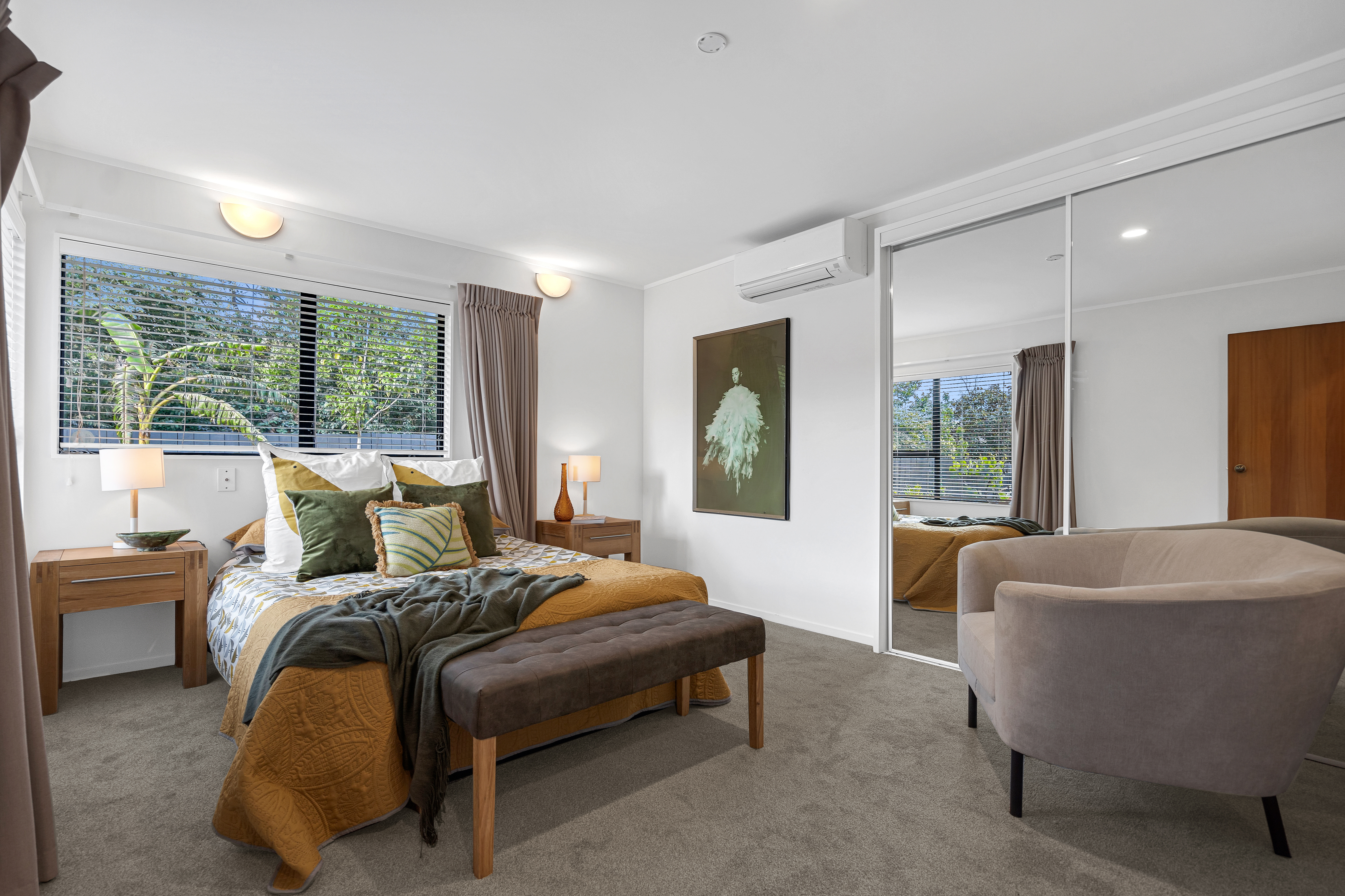 The interior condition is excellent, with beautiful, fixed floor coverings, modern blinds, and 2 heat pumps for all year-round cosiness. The bedrooms are well-sized and offer plenty of natural light and this home also offers a separate laundry. The bathroom is a semi ensuite with bath, and there is a separate WC.