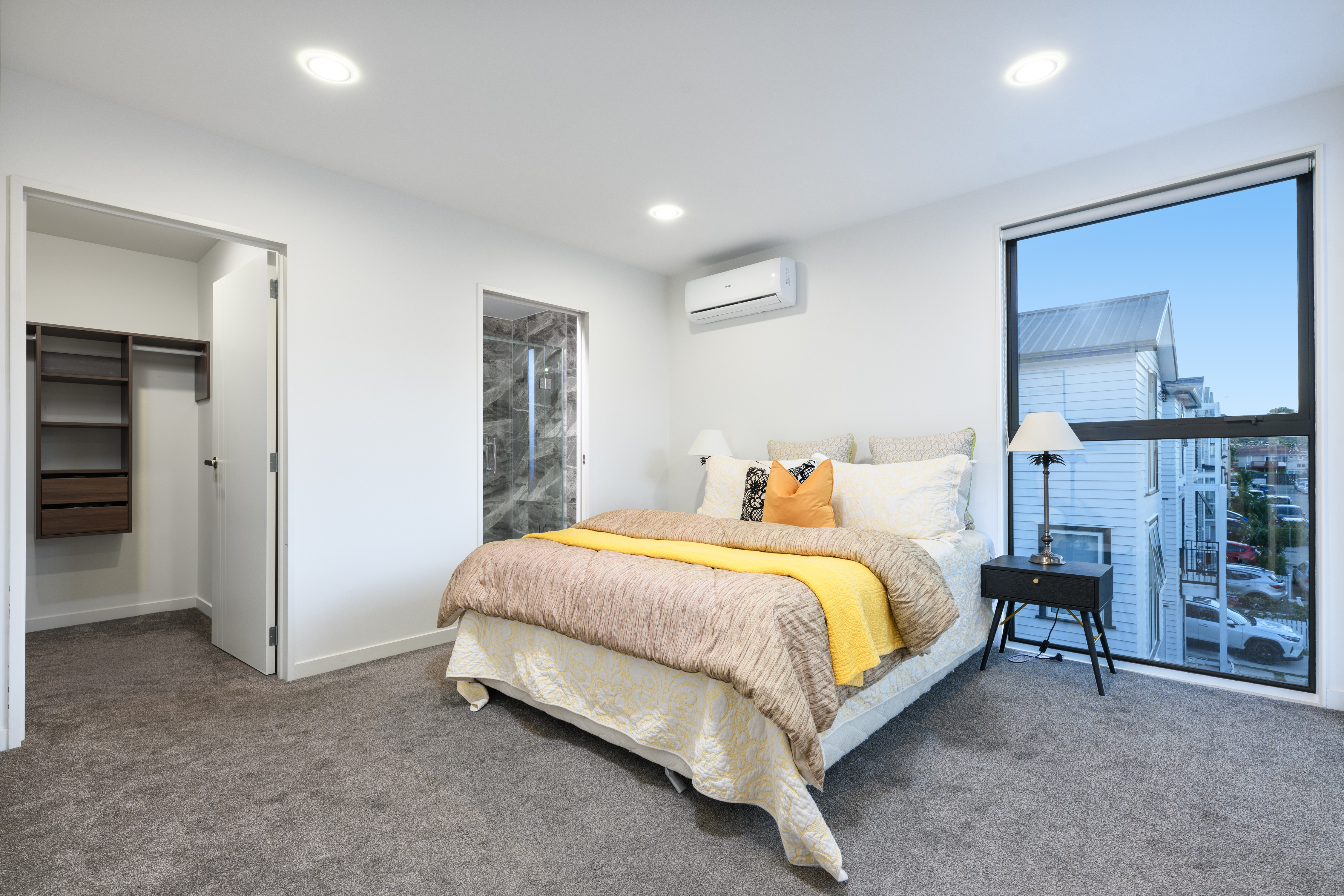Parking is also well catered for with a large single garage with internal access and a further off-street carpark. Additional features of the property include underfloor heating in the bathrooms, heat pumps and an intercom.