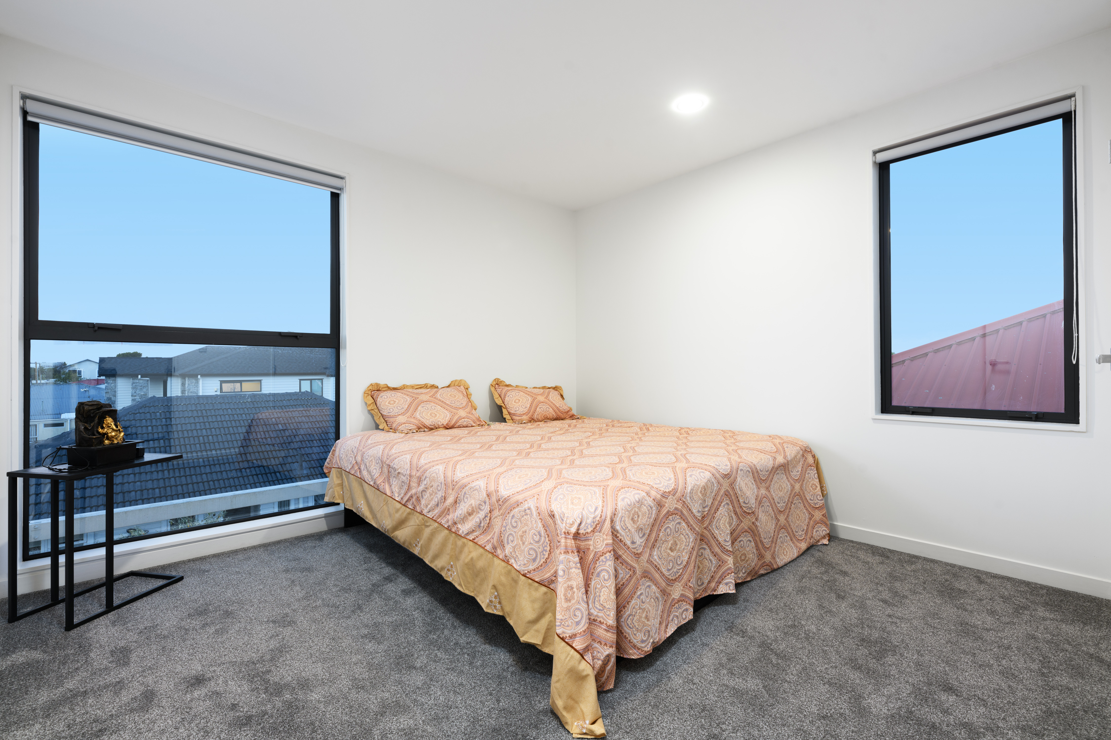 Three bedrooms and two bathrooms (including one master ensuite) make up the top floor while the ground floor boasts a fourth bedroom and bathroom along with an additional living space/fifth bedroom opening onto a fully fenced back lawn providing room for the kids, a home office or the option for flatmates.