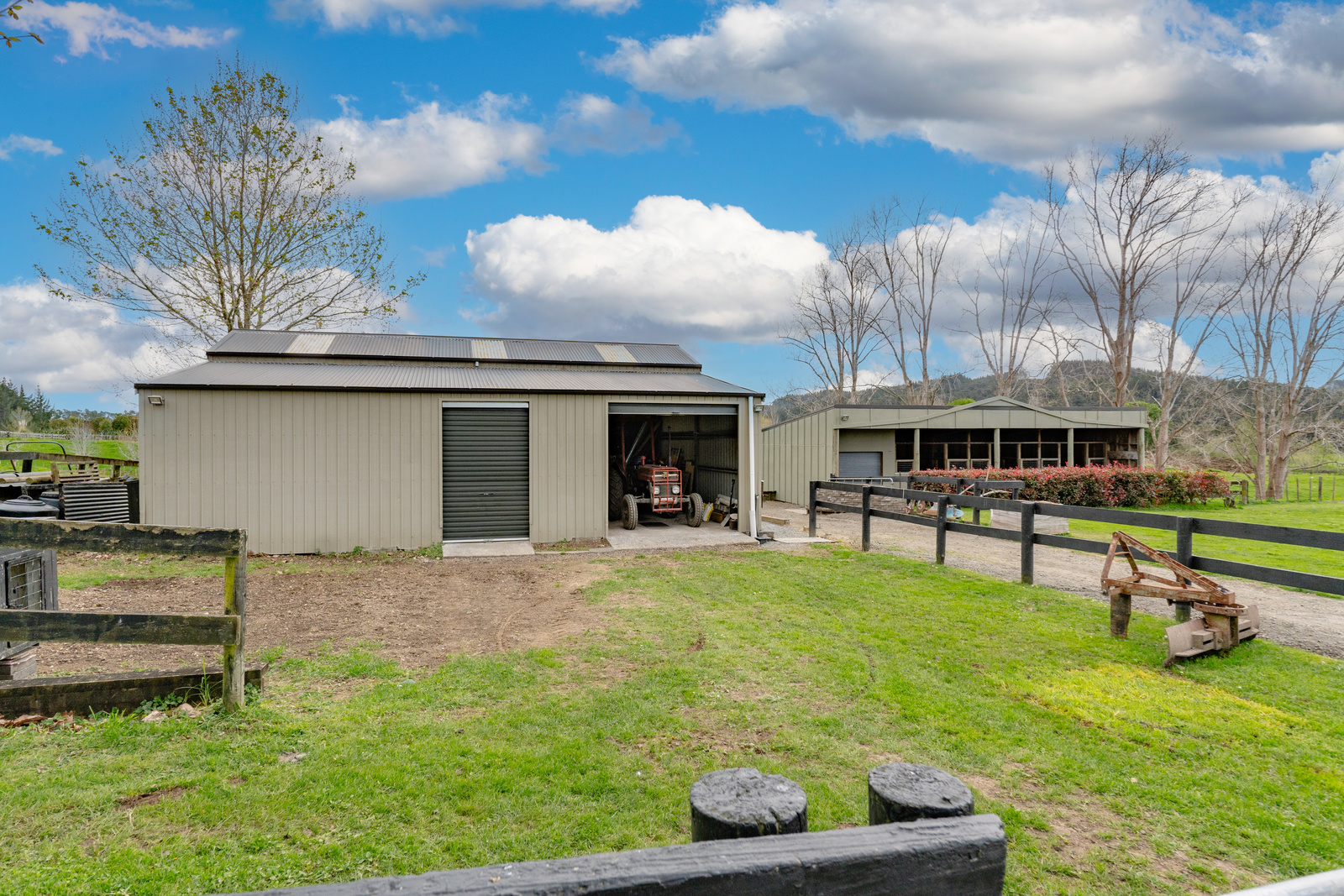 This property has been set up with the equestrian enthusiast in mind - but is equally comfortable grazing dry stock. The soil may be suitable for a horticultural enterprise (horticultural and water availability assessments available). Plenty of room for the toys in the American barn which includes large workshop area and additional self-contained one-bedroom studio, (studio not permitted). Three bay stable complex includes tack/feed storage room (not permitted). On the Western boundary there is a second formed road which provides access to the adjoining paddocks and stock yards/cattle race. This drive is completely separate from the main drive to the house, it's an independent access for additional shedding, storing heavy equipment, hay sheds, dressage arena etc.