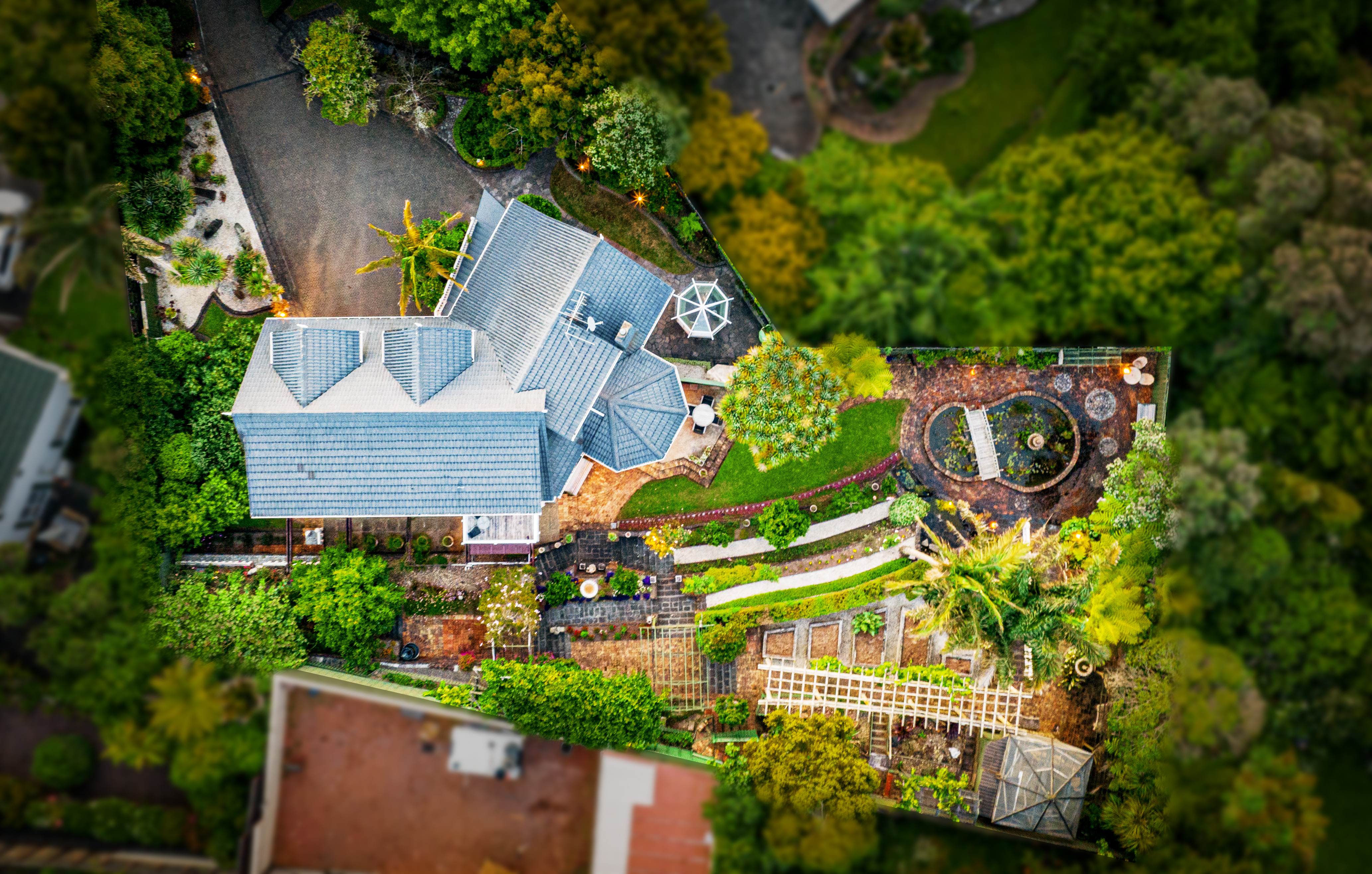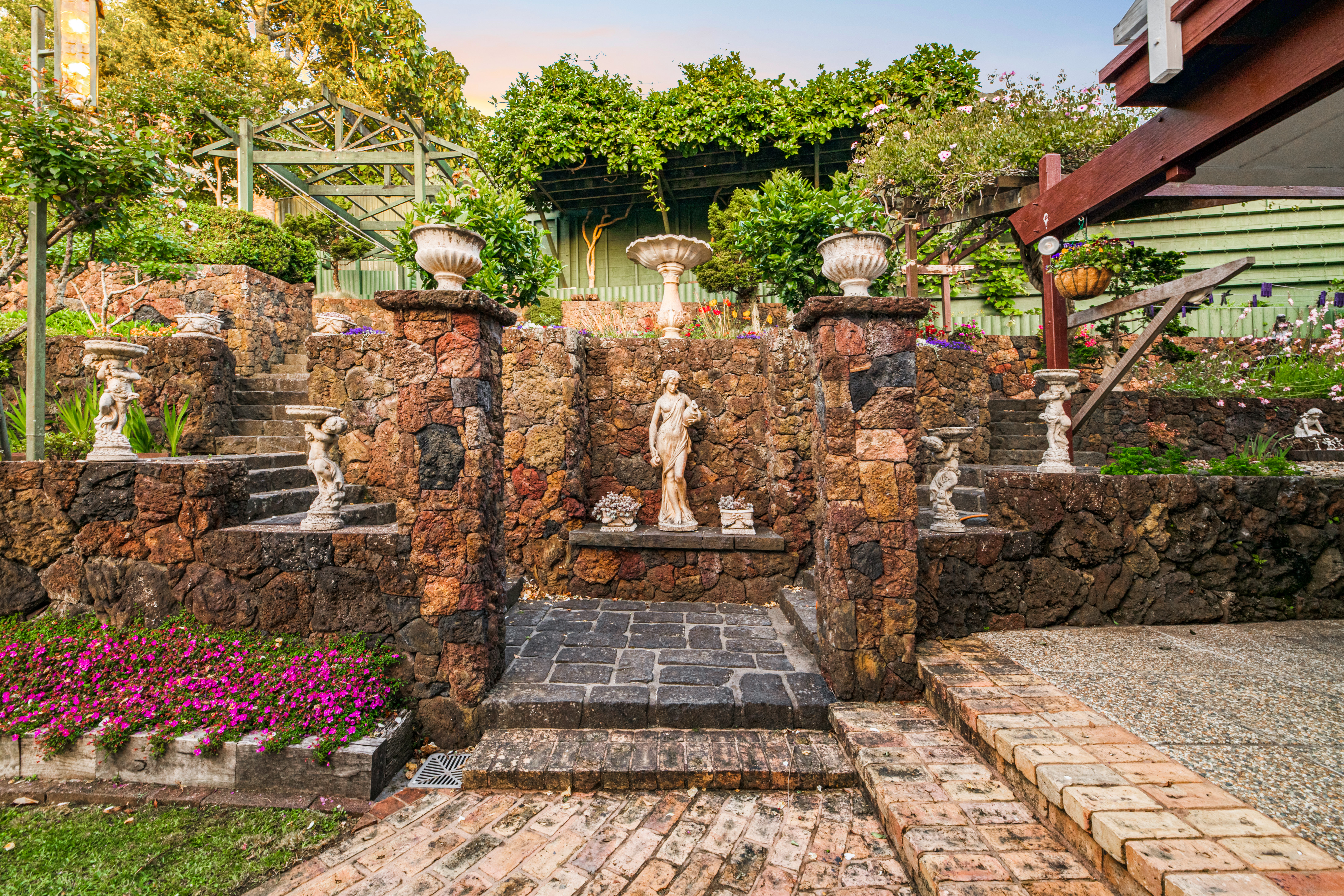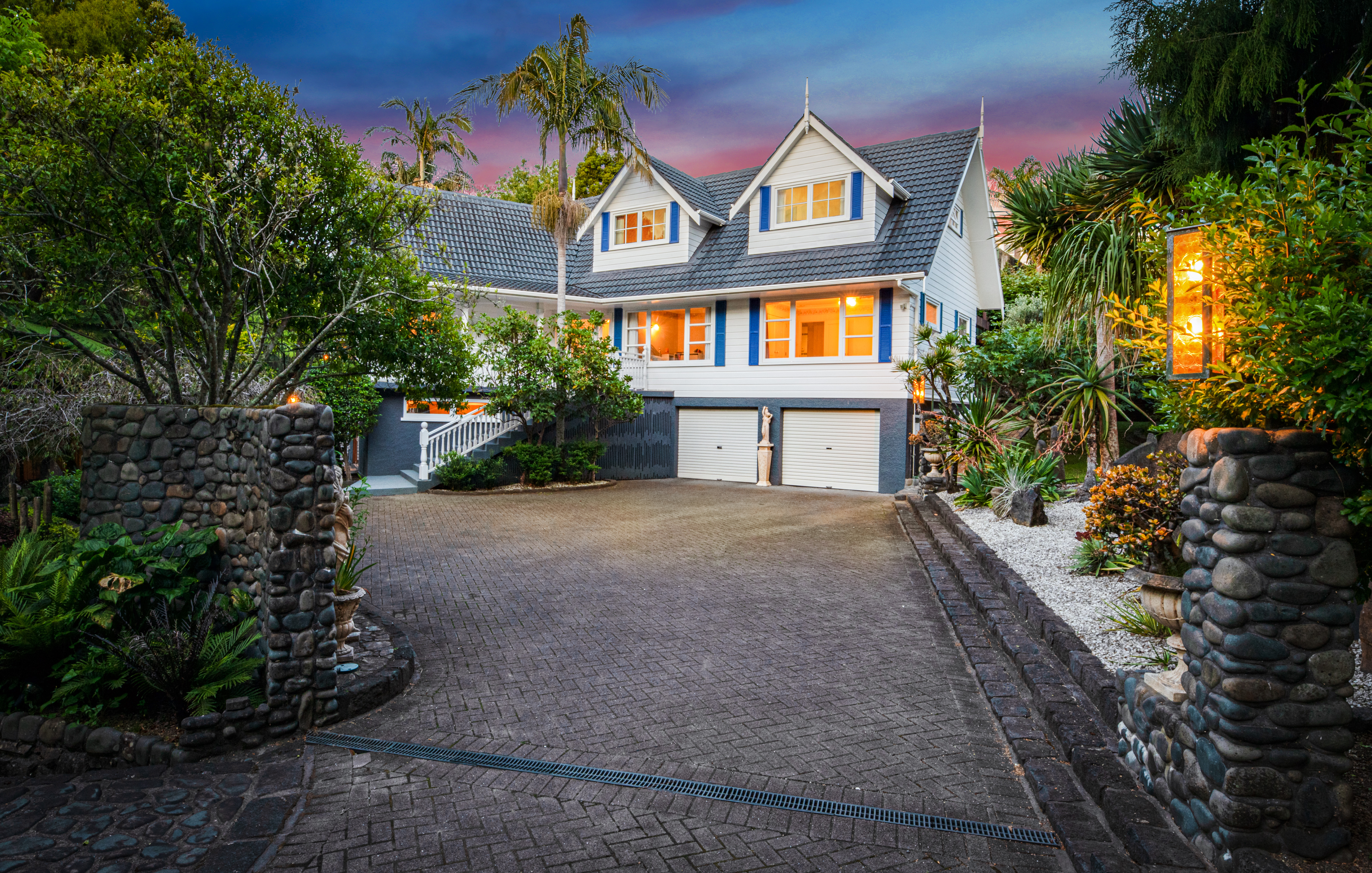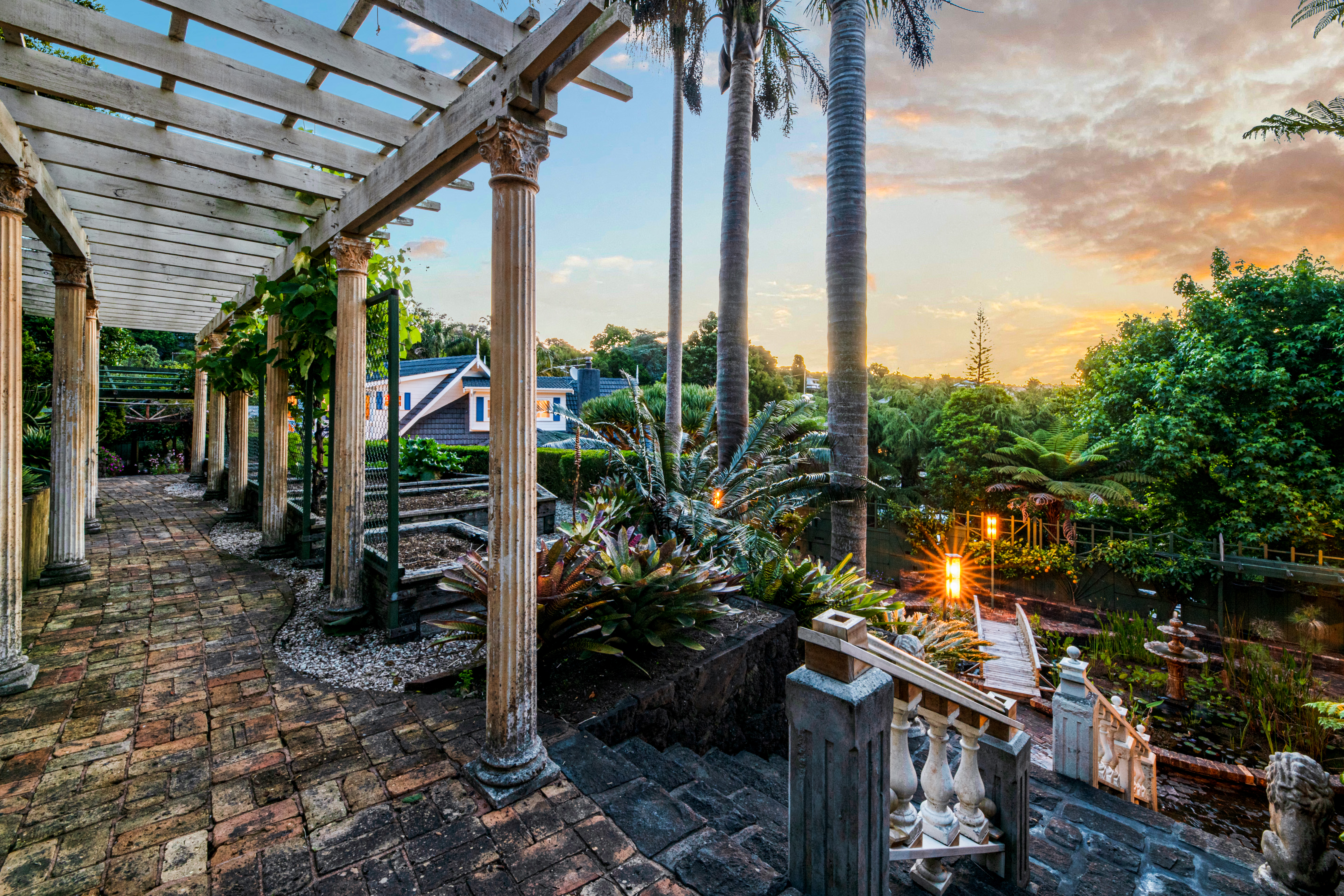 The property is beautifully landscaped, with terraced stone gardens featuring an aviary, pond and waterfall with ample opportunities for children's play or gardening enthusiasts. With the addition of a gate, this property will be fully fenced. The rear of the property is very private with areas specifically designed to take advantage of the calming and expansive views of the Waitakeres.