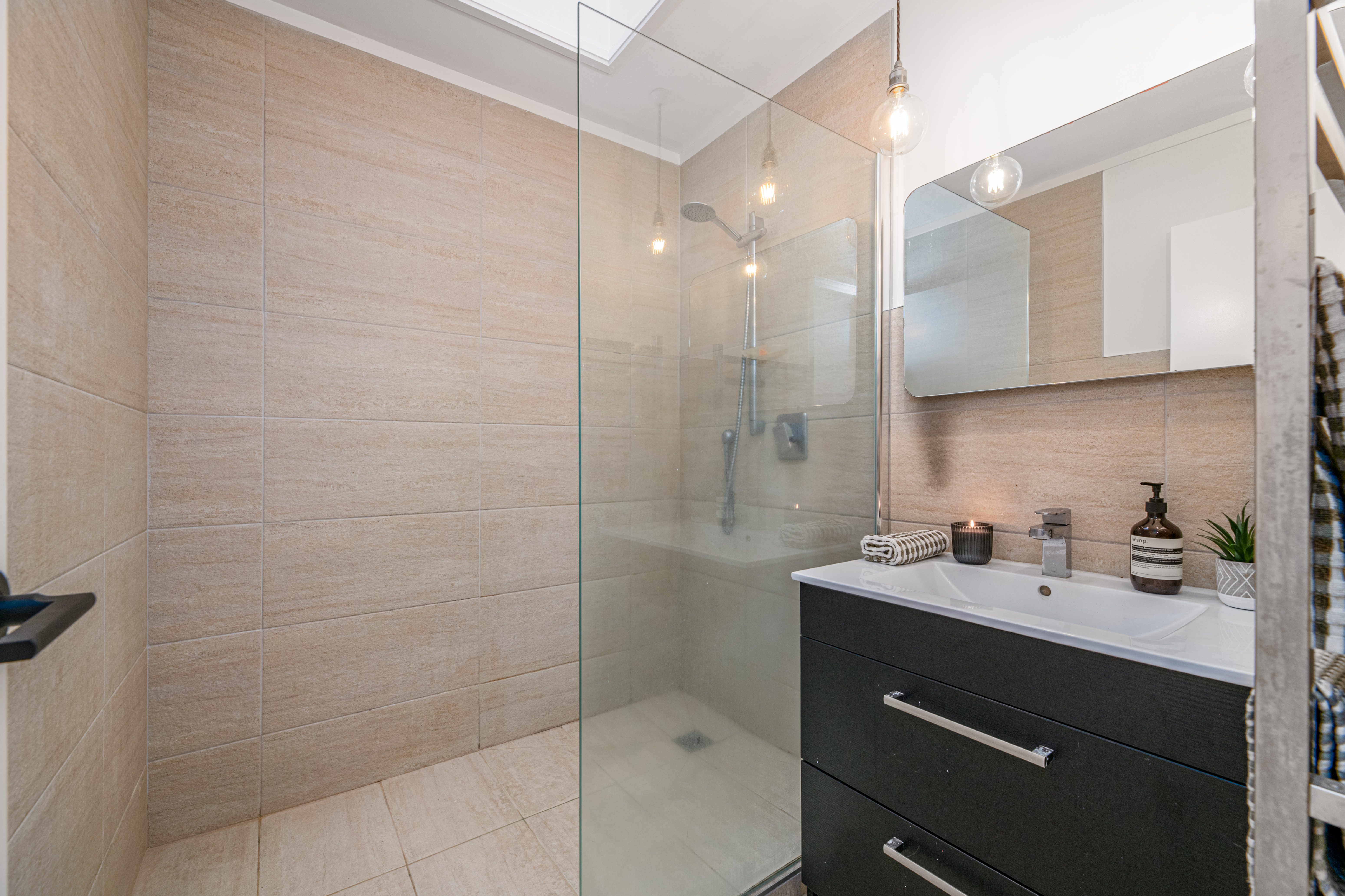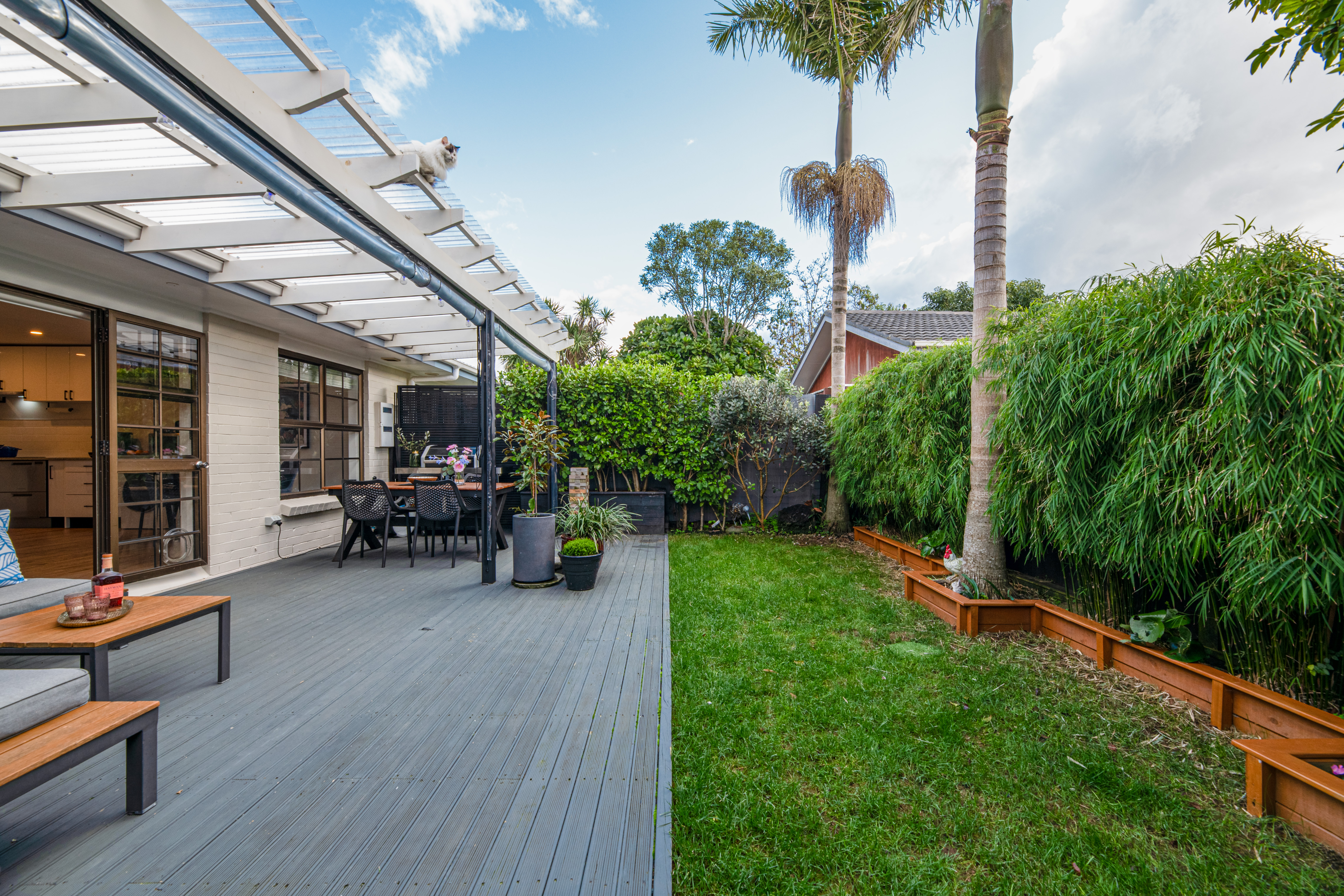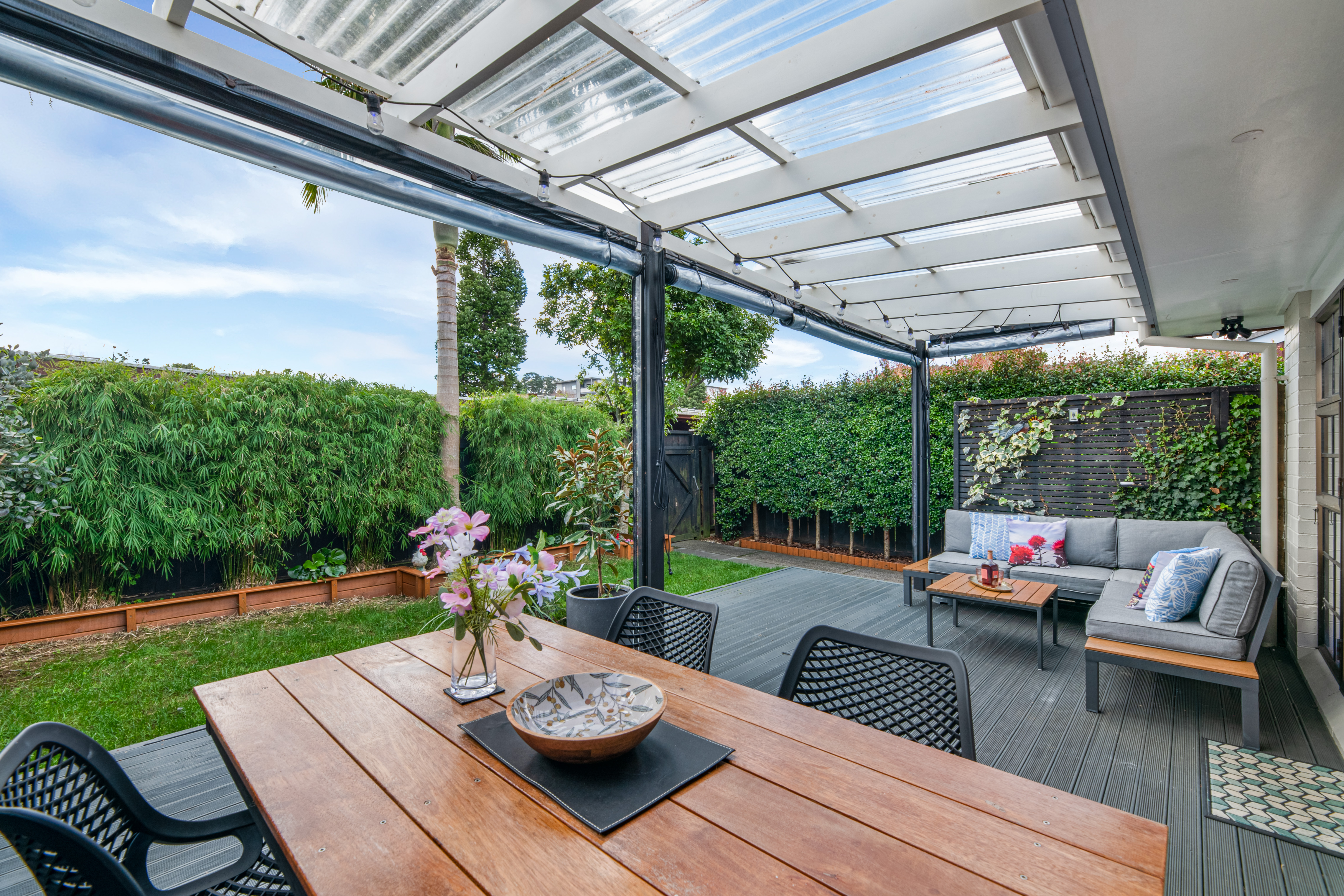 At the end of a private right of way, this solid well designed and beautifully finished brick and tile home offers sanctuary and privacy in the heart of Onehunga.
